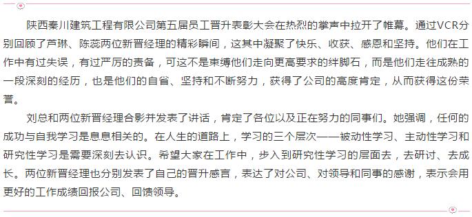 熱烈祝賀陜西秦川建筑工程有限公司第五屆員工晉升表彰大會圓滿舉辦!