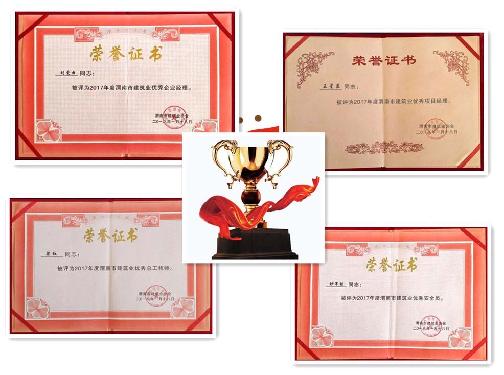 會(huì)議宣布了2017年度渭南市建筑業(yè)各類獎(jiǎng)項(xiàng)的評選結(jié)果,我公司榮獲“先進(jìn)企業(yè)”獎(jiǎng),劉總經(jīng)理榮獲市“優(yōu)秀企業(yè)經(jīng)理”,公司承建的秦川·華府5#、6#樓項(xiàng)目被評為“優(yōu)質(zhì)結(jié)構(gòu)工程”,項(xiàng)目經(jīng)理王星顯被評為市“優(yōu)秀項(xiàng)目經(jīng)理”,項(xiàng)目部總工程師梁紅、質(zhì)量員賀錦嬋、安全員鈔軍勝,分別被評為市“優(yōu)秀總工程師”、市“優(yōu)秀質(zhì)量員”、市“優(yōu)秀安全員”。